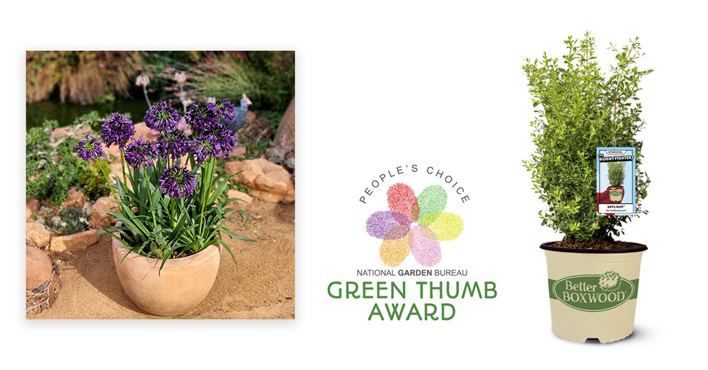 We are very excited to announce we had 2 winners in the National Garden Bureau's new Green Thumb People’s Choice awards. Over 10,000 votes were cast by home gardeners, who selected BlackJack Agapanthus as the winner in the perennials category and Skylight Better Boxwood in the shrub division.