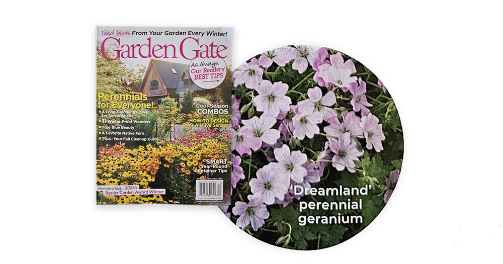 We work not only on B2B marketing but B2C promotion as well. We’re excited to see the November/December issue of Garden Gate magazine includes a piece on Perennial Geraniums. In the article our Dreamland Geranium is described as, "will spill over the edge of your patio or container with its pale pink late spring to summer blooms." The article goes on to describe it as a nectar-rich variety attracting bees and butterflies. So we agree, it is a dream in the landscape! Be sure Dreamland is a part of your perennial offerings. Reach out to one of our Concept Plants grower partners today to source liners or finished material.