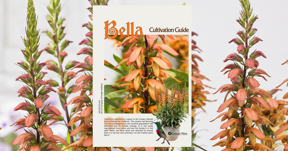 If growers are successful, then we all win. With that in mind, we’ve created a Cultivation Guide for Bella Isoplexis. If you’re not familiar with Bella Isoplexis, she is a head-turner from May through October as she produces apricot-colored flowers borne on a compact, well-branched plant. Bella's super-power is less time from URC to a finished product. Bella is available through the Concept Plants grower network.